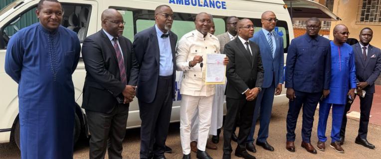 La cérémonie de remise de l'ambulance médicalisée de type C à cette Formation Sanitaire (Fosa) du département du Dja-et-Lobo, dans la Région du Sud...